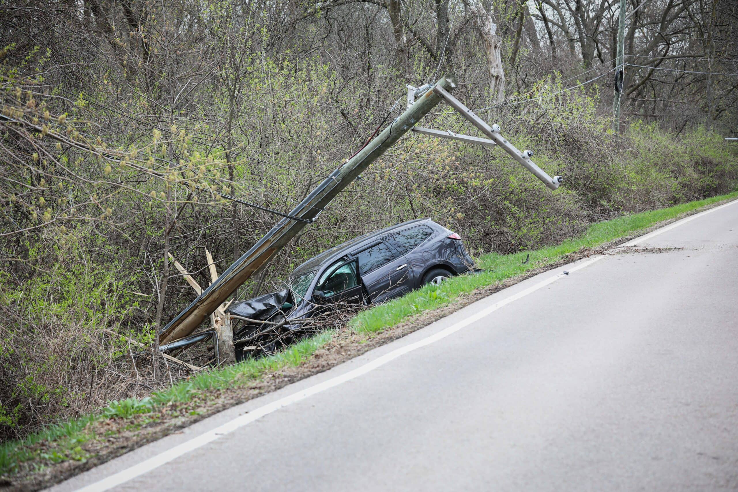 The SUV had struck a utility pole and sustained heavy damage.