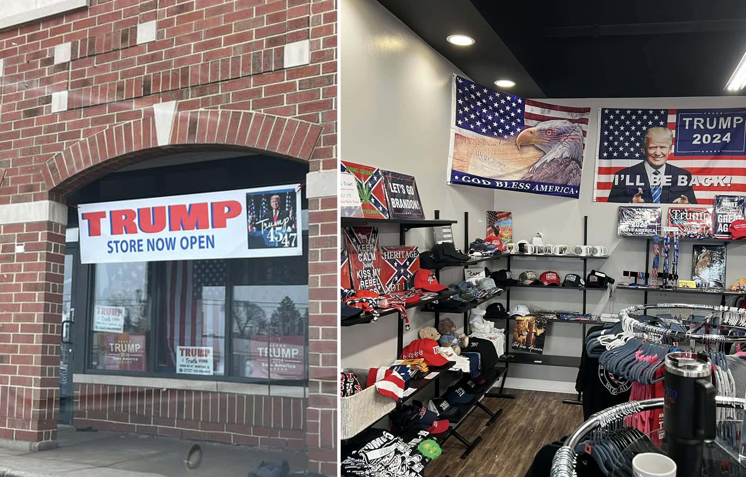 The closure came after the store was facing eviction for what Fleischmann said was due to her displaying Trump signs, flags, table chairs, a Trump inflatable and a sign on her trailer outside the store.