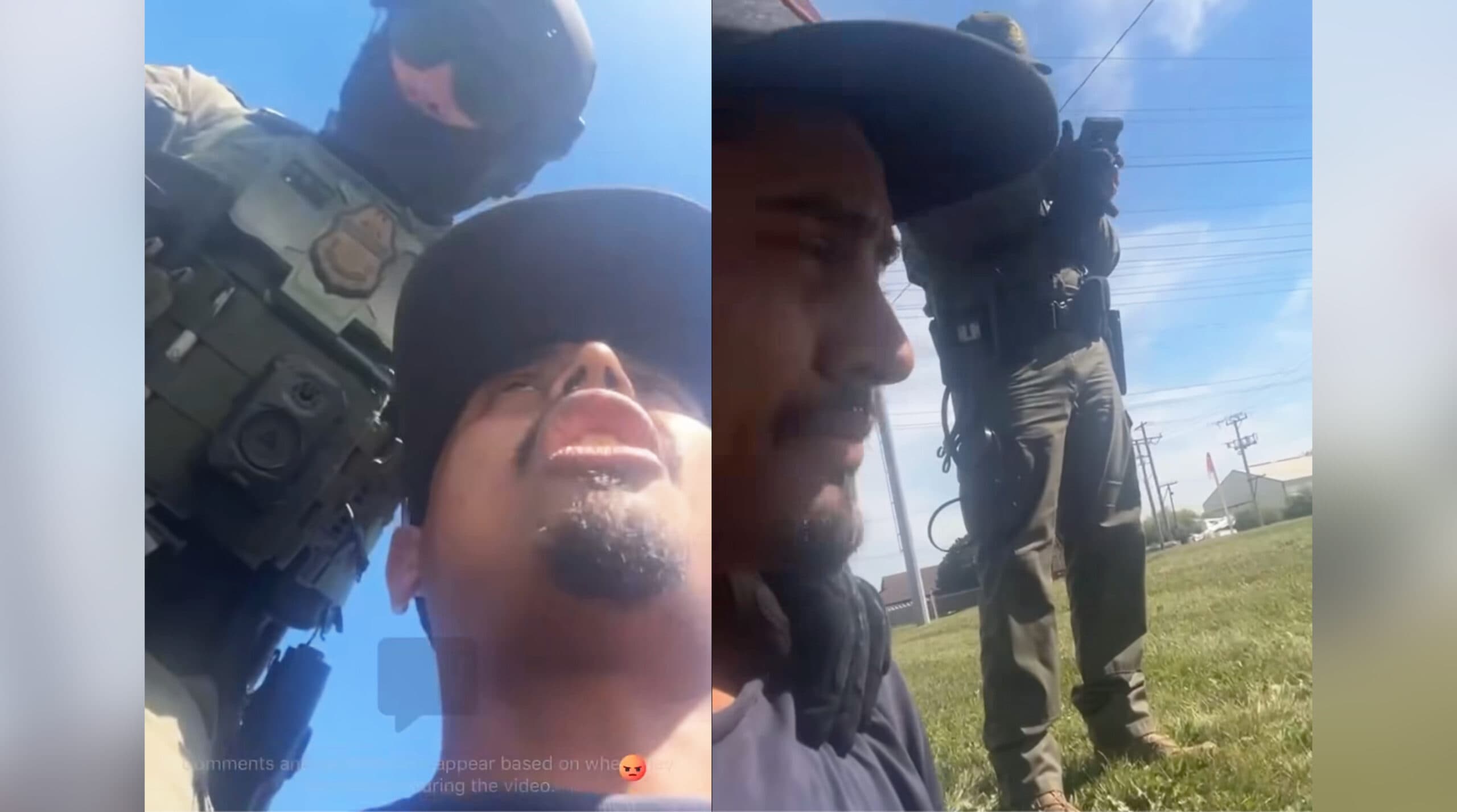 A Facebook live video captured a man, who was holding a promotional sign for a nearby business on the side of the road, being detained by Border Patrol at Washington Street and Green Bay Road in Waukegan around noon.