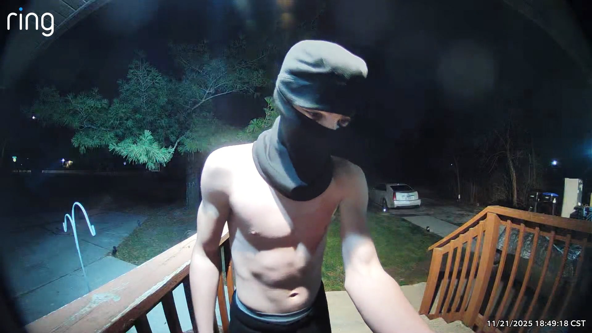 The suspect was wearing black sweatpants, a black shiesty ski mask and was shirtless.