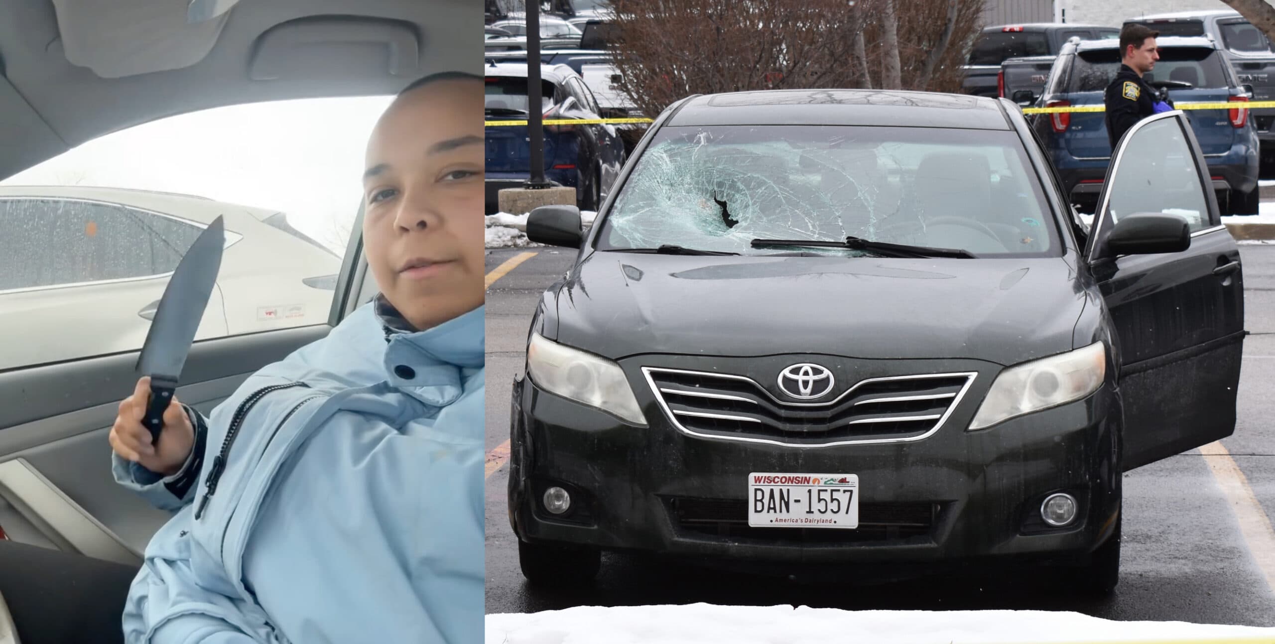 A Wisconsin woman recorded herself bragging about escaping Gurnee police after allegedly hitting and injuring two people with her car at a Gurnee Mills parking lot, before attacking a random man with a knife on Monday.
