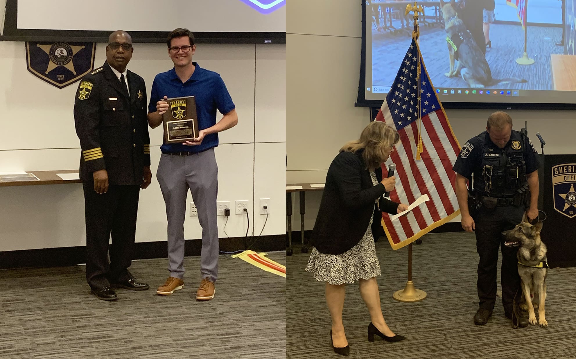 Sheriff awards bystander who saved woman choking near Grayslake; K-9 Danno sworn in