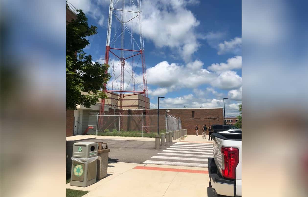 Man detained after climbing up radio tower in Woodstock